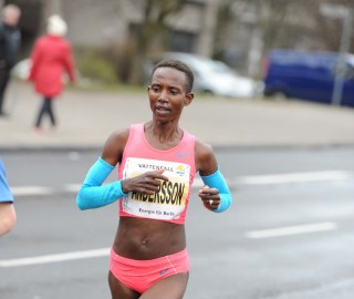 Strax före 15 km kom de två kenyanska löparna Cynthia Kosgei och Elizeba Cherono ikapp Isabellah och Fredrik.