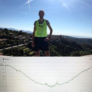 Så efter lite inledande jobb, tog jag mig till närliggande bergen utanför Nice och gav mig ut i härlig försommarvärme på ett 34 km pass, där jag körde 15 km i riktigt bra tempo bara utför.....58 minuter på utförslöpningen och sen tog det 10 minuter längre på uppförlöpningen tillbaks. På kvällen hade jag tänkt jobba på med träningsprogramjobb som jag ständigt ligger efter med....men passet tog så hårt att det inte blev mycket gjort..... 11 timmar senare upprepade jag passet, men nu i lugnare fart och inga extrakilometrar innan och efter och inga "extra" höjdmeter...för benen var precis lagom slitna.