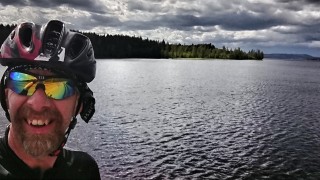 Efter shopping blir det en kebabrulle på pizzerian innan vi kan rulla iväg norrut. Jag får en flaska med Umara av Roger vilket är dubbelt bra, jag behöver ju en ny flaska och dessutom fylld med sportdryck. Det är knappt tolv mil kvar till min stopover i Siljansnäs, det är om möjligt ännu mindre trafik så här på kvällen och vi kan rulla ostörda i bredd och tjattra om ditt och datt nästan hela tiden. Liten skön väg förbi Lindesnäs och Nås till utkanten av Dala-Järna. Mörka moln drar in - vi stannar till för en kisspaus innan det börjar regna. Någon blixt på horisonten, enstaka tunga droppar faller, regndoften i luften. Så brakar det loss, ett tungt kallt regn strilar ner. Vi fortsätter mot nordost och Siljansbygden genom tät skog, här finns inte mycket mer än stora träd och en rak väg som böljar upp och ned. Regnet faller men vi kör på bra ändå. Skymningen faller också men det blir inte helmörkt, det räcker egentligen att vi tänder baklyktorna så vi syns. In mot Leksand avtar regnet i intensitet och slutar sedan. Vi lämnar Leksandsvägen innan vi kommer in i byn, svänger vänster på en mindre väg mot Siljansnäs och västsidan av sjön. Över en vacker liten bro och så är vi framme! 355 km, vilket är personrekord i lång distans på en dag; känner mig lite småtrött såklart men ändå oväntat fräsch. Förutom våtdräktsskavet från igår inga skavanker alls, inte ens helslaktade ben trots att jag varit igång mer eller mindra konstant från klockan nio till en stund innan midnatt. Fantastiskt bra.