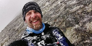 Efter vindskyddet är det nedför, blandat fin lätt stigläpning med korta spångpassager, de sista resterna av svensk spångmetodik, de norska lederna är mycket mer sparsmakade med spång utan går direkt genom grundare (och djupare) våtmarker utan större åthövor. Men här finns fortfarande spångad led. Kommer underkylt regn och hagel och jag gör turens enda regelrätta vurpa på en glashal spång. Bannar mig själv och tar ännu försiktigare kliv upp på spänger och brädor i fortsättningen. Annars tuggar det på bra med fin löpning och ett stigande humör. Käkar distans mot Storerikvollen ganska bra nu, och temperaturen går från noll till ett fåtal plusgrader när jag lämnar kalfjäll och kommer in i fjällbjörksterrängen runt Nedalssjön.