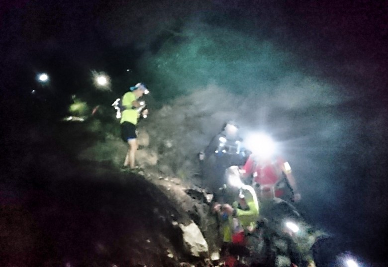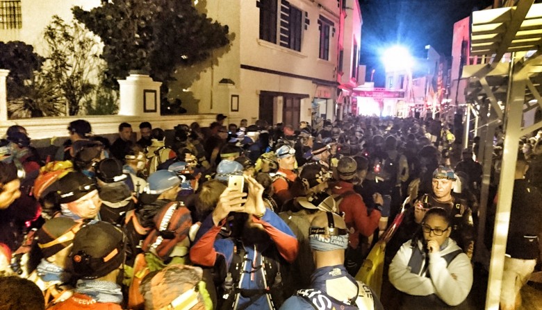 Uppladdningen på plats har varit bra, bor med familjen nära målområdet, fixat nummerlapp och parapernalia, drop bag incheckad och efter en låååång bussresa till norra änden av ön byggs stämningen upp i en trång gränd i Puerto de las Nieves. Spansk rap och en extatisk speaker, jag hittar lugnet på en bänk precis invid startfållan medan gränden fylls av allt fler människor. Och så är vi iväg; efter en kort bit genom byn bär det av uppför i mörkret. Nästan niohundra löpare och jag har inga anspråk på att ta mig fort fram så jag finner mig tillrätta i den långa gåsmarschen. Scenen med alla pannlampor som ett långt streck, böljande längs bergssidorna, är otroligt läcker.