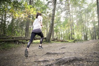 Låt överkroppen reglera farten. Är det brant? Sträck på dig och ta korta steg med mjuka knän. Lutar det lite lätt utför? Våga luta in höften och överkroppen i steget och låt benen rulla på som ett hjul. Då kommer du får hjälp av lutningen och kan springa snabbare, men med mindre ansträngning.