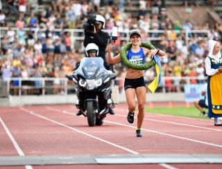 Så blev det och när Mikaela sprang in på Stockholms Stadion möttes hon av publikens jubel. Klockan stannade på 2.40.28 i den 27-gradiga värmen – mindre än två minuter från hennes personliga rekord – vilket innebar seger med över 3,5 minuter!