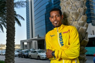 Desto tunnare är meritlistan i maraton. Adhanom har alltid kännetecknats av en attackvilja som inte har varit gynnsam för uthållighetens schackspel och lett till brutna lopp. I våras kvalade han in till VM på klassiskt Abraha-vis i Hamburg, där han startade bakom elitfältet, men sprang kvickt ikapp avståndet och hängde sedan med ledarklungan över halva loppet. Men den här gången fullföljde Abraha, även om han sprang halvorna på 63 (!) respektive 71 minuter till 2:14.24.
