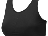 Sporttop med boxarrygg och små ventilerande hål i ryggen och fram mellan brösten. Breda axelband. Enkel topp som det bara är att dra på – inga spännen. Två lager.