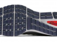 Den väldämpade Vomero klarar många mil har en ellansula med dubbel densitet med en mjuk Lunar-kärna och fastare Cushlon-hölje. Zoom Air kudde under häl och framfot bidrar också till den fina dämpningen och ger bra respons i varje steg. Nytt i version 13 är ovandelen cirkulärt stickad luftig meshväv men tekniken gör att ovandelen tappar lite av sin stabiltet. FlyWire trådarna ska stabilsera foten men det funkar sådär. Slitsulan ger bra grepp på asfalt men samlar skräp i på motionsspår och grusväg.