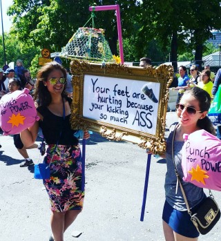 – Det var underbart att se så hur vi gjorde löparna glada löparna, vi blev helt svettiga av alla som ville fylla på energi och slå på våra "Punch for Power"-kuddar, säger Natali Ani Arzoumalian från Tyresö som tillsammans med syrran Osanna Scanlan av en enhällig jury utsågs som vinnare i pepp-tävlingen.