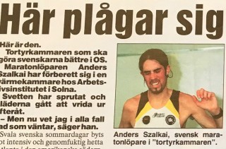 Hur som sansade jag mig lite efter 13 km passet i glädjefart och tog det lugnt veckan ut med träningen. Ett pass som jag brukar stämma av med kroppen körde jag en vecka efter Sthlm. 5x200m med 200 jogg-vila på bana. På den tiden gav känslan och den konkreta tiden på 200 meter mig lite besked kring om jag var för sliten av lopp/träning eller om det bara var att köra på. Förutom just att stämma av tycker jag ett sådant inslag i långloppsträning är bra. Lite fart för benen, och samtidigt så långt flytlopp (runt 30 sekunder) att man samtidigt får lite puls och flås utan att det sliter. Jag borde lägga in fler sådana inslag igen i nutid så fort jag är 100% igen… men nu 1996 när detta pass flöt på ok en vecka efter maran med 33-32-31-30-29 på 200-ingarna kunde jag dra igång förfullt igen. 8 veckor fanns att jobba på fram till OS maran.