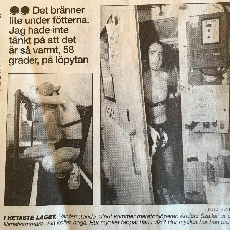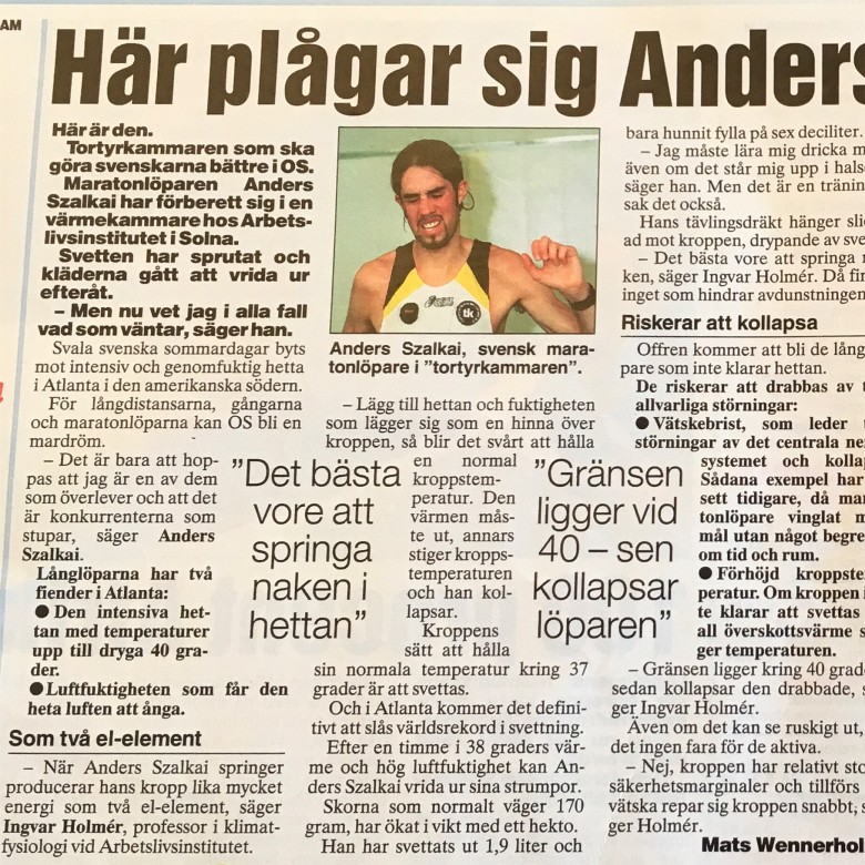 Det jag konkret skulle ändra på i min normala träning var att träna i värme. Utifrån att snitt temperaturen i OS staden Atlanta låg på 30 grader med hög luftfuktighet och toppar på klar över 40 grader var det en sak många runt mig sa att jag borde träna på redan hemma. Så via SOK (tror jag) fick jag möjlighet att träna i en värmekammare….