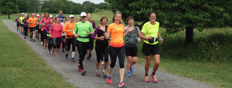 Sommarlångpass med stor uppslutning. Här har vi "6.30 min/km fartgruppen" som kör ute på Djurgården i Stockholm.