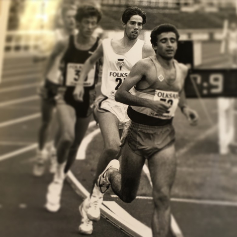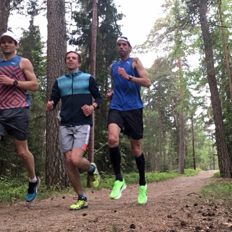 Uppvärmning inför testlopp/5000 meter på bana med mina "farthållare" Daniel Norberg och Erik Emilsson.