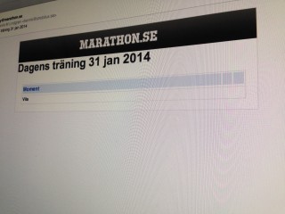 Jag som inte är så van att träna efter träningsprogram och ännu är lite osäker på min faktiska målsättning och prestationsnivå valde att igår starta upp med programmet för tider under 3.45 h för att se hur det känns. Varje morgon får man ett mail med dagens träningsprogram. Man vet att det kommer att bli träning, men inte exakt utformningen. Det är lite samma känsla som infinner sig som på morgonen i december som 6-åring. Skillnaden är att chokladen har bytts ut mot träning. Spännande! Jag undrade så var det skulle bli igår. Jag startade upp datorn. Öppnade mailet och……..