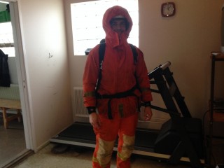Min frus kusin Thomas arbetar som deltidsbrandman vid räddningstjänsten i Östra Blekinge. Han har länge undrat om jag inte ville prova på att göra ett av de intagningsprov man gör som rökdykare. Dvs göra det test där man med tjockt underställ, skyddskläder, hjälm och tuber på ryggen går på ett löpband. Efter en uppvärmningsfas ställer hastighet och lutning in sig på det förprogrammerade bandet, sedan är det bara att gå…