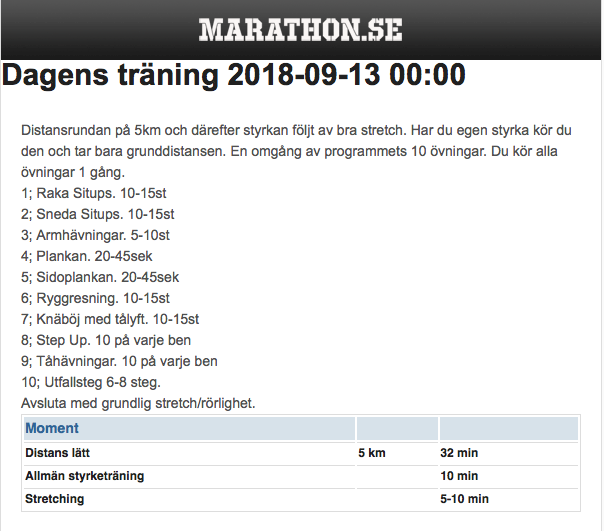 Drog iväg strax före 12 och körde detta pass med både löpning och styrketräning. Sprang till ett utegym, cirka 2,5 backiga kilometrar, körde styrkepasset och aaaah, jag styrketränar alldeles för sällan, blev helt slut. Det var tuffa kilometrar tillbaka till jobbet. Och stretchen efter passet var så skön och kändes som en belöning för kroppen.