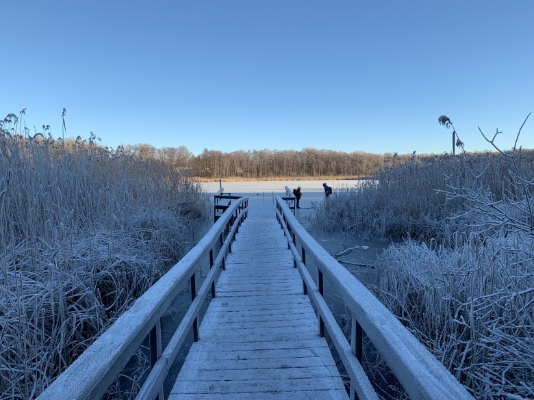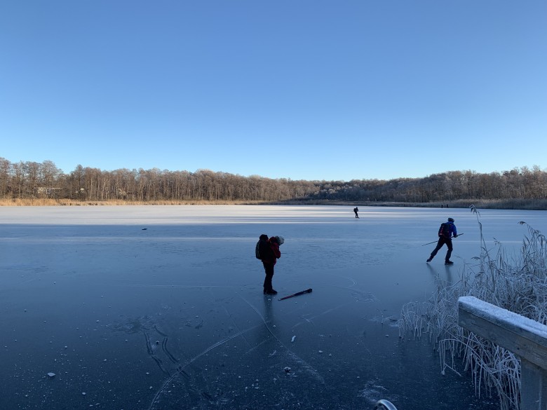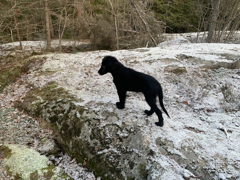 Jobbar hemma idag, så det blev en runda här omkring. Ner till Kyrksjön, ett varv runt och hem igen. Min löpträning blev träning även för valpen Yra - hon fick träna på att vara ensam. 30 minuter gick galant, hon låg och sov när jag öppnade dörren. Längtar tills hon kan följa med mig ut på en runda - vilken lycka.Jag känner mig så priviligierad att ha så fina löparstråk bara några minuters jogg hemifrån. Flera fina skogsområden, sjöar och promenadstråk. Idag åktes det skridskor på Kyrksjön. Galet - är inte det lite tidigt. Jag har en otrolig respekt för isar, men de här så proffsiga ut och verkade ha all viktig utrustning. Måste bara lägga upp en liten bild på valpen också. Hon växer så det knakar just nu och hennes ben har blivit sååå långa. Och bakbenen verkar växa ytterligare lite extra. Så gulligt.