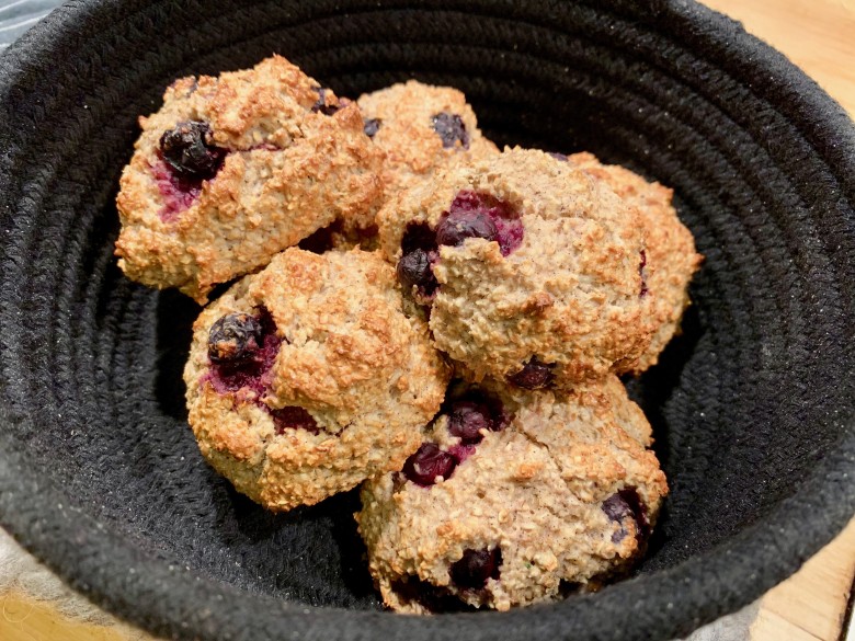 Den här gången passade jag även på att göra hälften av smeten med frysta bär (kappt en dl) och 1 tsk vaniljpulver. Precis som Linda tipsar om i boken. Då blir de ännu lättare att ta med sig på utflykt eller i träningsväskan eftersom du inte behöver pålägg. Supergott. Jag har precis testat en till en kopp te. De andra har jag slängt in i frysen och tänker ha som mellis innan träning.