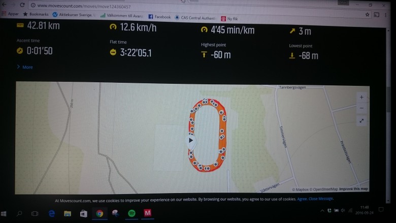 Skavankerna efter Western States gav med sig och nu är tanken att jag ska springa mitt första 24h-lopp i Oslo den 18-19 November. Förberedelserna inför det loppet har gått hyfsat bra under hösten och med drygt 6 veckor kvar så har jag en positiv känsla i kroppen. En förkylning under veckan som gick gjorde att jag fick ta några dagar vila. Förhoppningsvis så slipper jag något mer sånt inpå loppet.