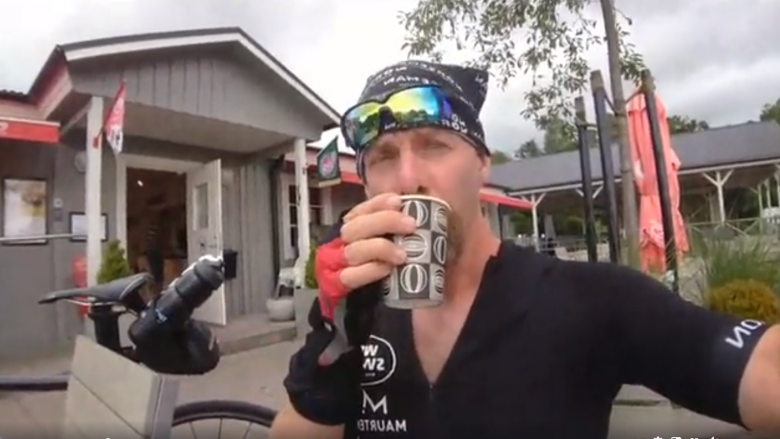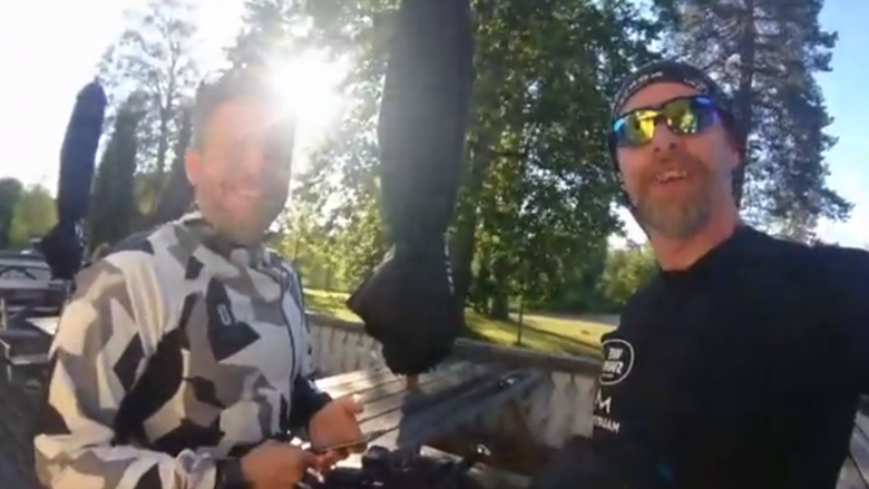 Efter shopping blir det en kebabrulle på pizzerian innan vi kan rulla iväg norrut. Jag får en flaska med Umara av Roger vilket är dubbelt bra, jag behöver ju en ny flaska och dessutom fylld med sportdryck. Det är knappt tolv mil kvar till min stopover i Siljansnäs, det är om möjligt ännu mindre trafik så här på kvällen och vi kan rulla ostörda i bredd och tjattra om ditt och datt nästan hela tiden. Liten skön väg förbi Lindesnäs och Nås till utkanten av Dala-Järna. Mörka moln drar in - vi stannar till för en kisspaus innan det börjar regna. Någon blixt på horisonten, enstaka tunga droppar faller, regndoften i luften. Så brakar det loss, ett tungt kallt regn strilar ner. Vi fortsätter mot nordost och Siljansbygden genom tät skog, här finns inte mycket mer än stora träd och en rak väg som böljar upp och ned. Regnet faller men vi kör på bra ändå. Skymningen faller också men det blir inte helmörkt, det räcker egentligen att vi tänder baklyktorna så vi syns. In mot Leksand avtar regnet i intensitet och slutar sedan. Vi lämnar Leksandsvägen innan vi kommer in i byn, svänger vänster på en mindre väg mot Siljansnäs och västsidan av sjön. Över en vacker liten bro och så är vi framme! 355 km, vilket är personrekord i lång distans på en dag; känner mig lite småtrött såklart men ändå oväntat fräsch. Förutom våtdräktsskavet från igår inga skavanker alls, inte ens helslaktade ben trots att jag varit igång mer eller mindra konstant från klockan nio till en stund innan midnatt. Fantastiskt bra.