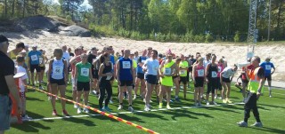 Vi trampar bort mot Fjärås, jag och hustrun, i rätt soft tempo. Båda teammedlemmarna vill spara benen till löpningen så vi rullar med skaplig kadens men lågt motstånd de knappa två milen till startområdet. Det flödande solskenet har nog hjälpt upp intresset för det nyrenoverade löparrangenmanget ity vid nummerlappsutdelningen är det folk högt och lågt. Det går dock snabbt och lätt att få ut nummerlapparna och snart är vi vid starten på fotbollsplanen. AM tar förstasträckan och som andrabenet i lag AMoR får jag nöjet att heja och bevaka loppet i största allmänhet den första halvan. Efter en halvtimme av gastande och fotande är det så min tur.