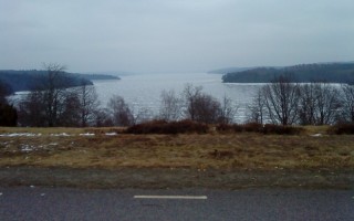 Lämnar hemmet strax efter lunch och joggar iväg uppåt ringvägen. Grått och småkallt, strax under nollan. En kilometer lätt jogg sedan upp i skapligt bra distansfart, 4:45-5 minuter per km. Känner mig rimligt fräsch i kroppen och steget känns otvunget. Jag passerar den så här års rätt öde stranden vid Gårda brygga, där isblock och skorv nu blockerar strandkanten. Det ligger ett istäcke ute på fjorden och känns inte som om det någonsin ska bli vår här. Löpunderlaget är emellertid bart, så när som på ett par små passager vid stranden och genom skogen så är det bar asfalt som gäller för dagen.