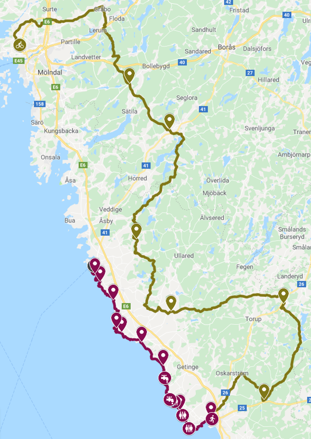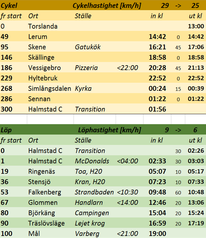 Från Halmstad springer jag strandstigarna norrut, efter 100 km bör jag ha kommit till Varberg och där tänker jag att jag stannar. Vattenpåfyllning där det passar, lördagfrukost eller brunch nånstans i Falkenberg, och säkert nåt stopp i Glommen och i Lejet. Ett morgondopp i Suseån lär det också få bli om inte vattnet är extremt lågt. Väderprognosen ser helt ok ut, det är bara att ladda batterierna och köra. Siktar på att klara av hela klabbet på ca 30 timmar, se den högst preliminära tidplanen nedan.