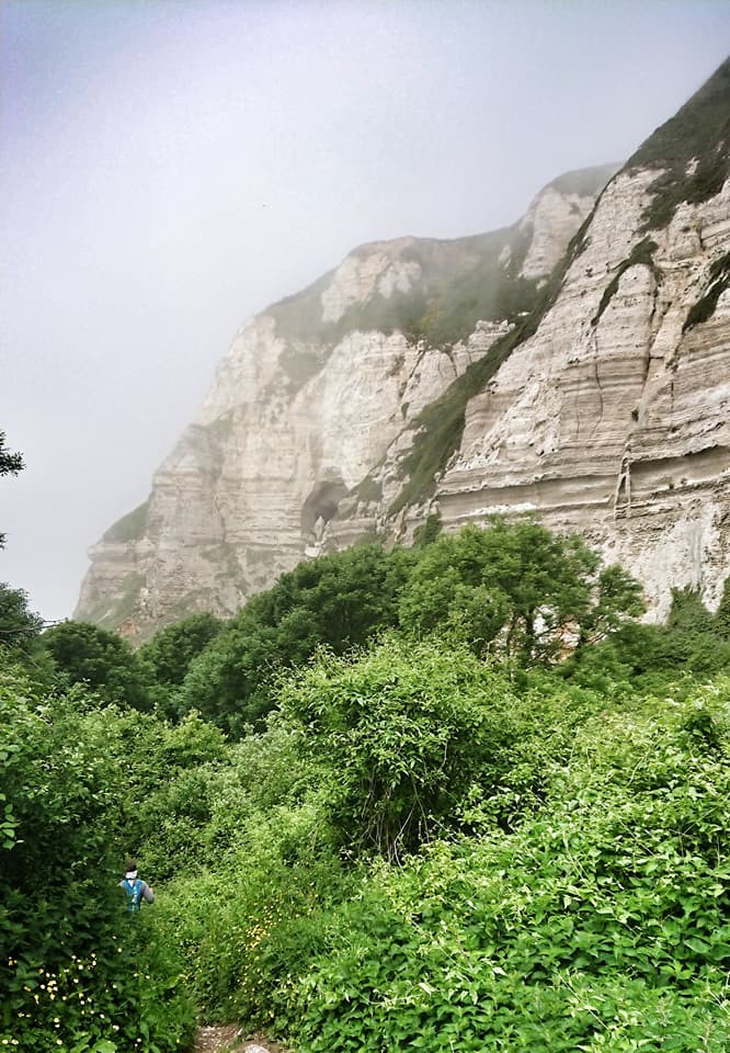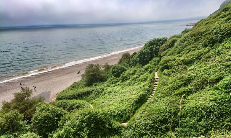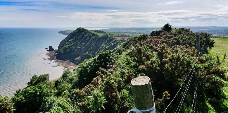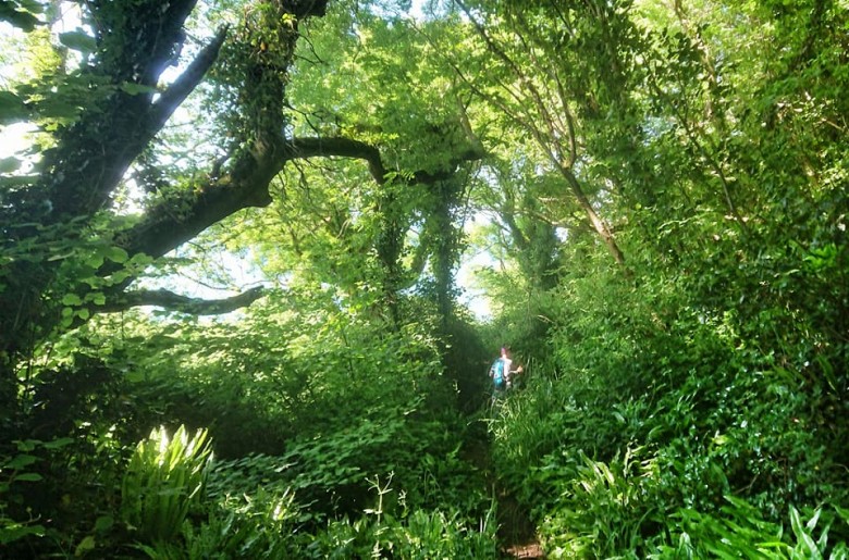 Vi kommer in i det stora område som kallas 'Undercliff', en rasbrant mellan havet och den klipp-platå som är East Devon. Fuktiga vindar och milt klimat ger en undervegetation som för tankarna till regnskog, det är mäktiga träd, blommor och stora taggiga buskar överallt. Stigen klamrar sig fast på bergssidan som för glatta livet, det går än upp än ned och ofta med stora och sneda trappsteg som man lika gärna kunnat ha och mista - men naturen är grandios så det gör inte så mycket.