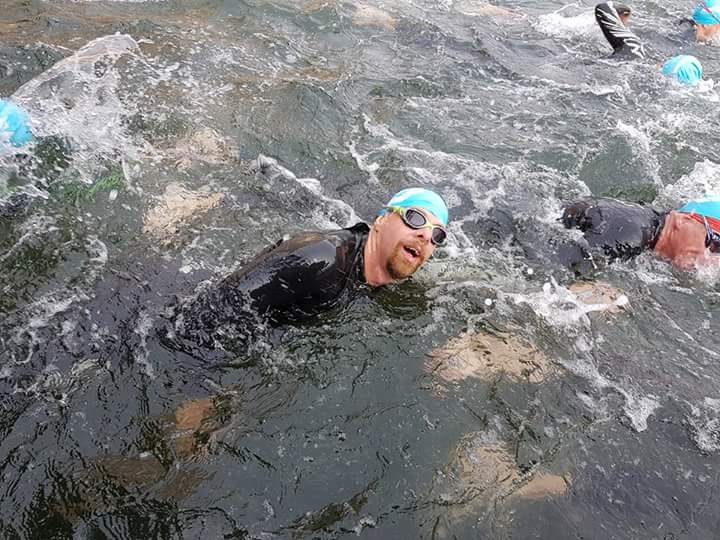 Lugn och fin simning, fokuserar på att ta jämna långa tag, vinna väg och tänka på streamline. Det är lång dag som väntar och simningen handlar idag om att komma fram med så mycket kraft kvar som möjligt. Temperaturen i vattnet är perfekt, kanske lite för varmt för jag blir lite småsvettig. Det är lite dimmigt ute i sundet. Ölandsbron syns inte så jättebra men bojarna syns hela tiden tydligt. En runda på två kilometer ute till havs, sedan kommer vi innanför vågbrytaren vid elevatorkajen. Det gör ingen skillnad på vattnet idag, det är lugnt överallt, men publiken dyker upp och det är ju trevligt. Fullt med folk som hejar på broar och kajkanter. Lyckas faktiskt både se och vinka till Hustrun som nästan hänger nere i vattnet under en av broarna.