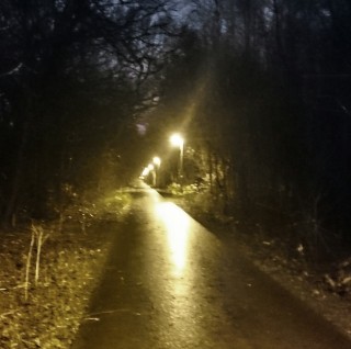 Jag lämnar grässlingan och springer tillbaka ut till cykelbanan, fortsätter mot Lomma. Kjell Höglund och Nick Cave manglar mina öron, annars är det enda sensoriska input jag får ett kallt regn som blåser över mina knogar. Svagt uppför och så hittar jag en avtagsväg in mot något som heter Alnarp. Jag kommer in på en tom och mörk, men ändå välbelyst cykelväg som för mig tillbaka söderut mot Malmö igen. En skön kilometerlång raksträcka genom skogen, inga tankar, ingen tvekan, bara mata på. Dessutom lite skydd för motvinden inne bland träden, ute på slätten blåser det snålt från sydväst och jag får allt tugga lite på tungan när jag passerat Arlöv och fortfarande har några kilometer kvar till min utgångspunkt vid Nordic Wellness vid Malmö Central.