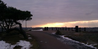 Gråkallt och några snöflingor i luften men det är gott om bar asfalt att bespringa. Jag kan dock inte låta bli att utmana mig själv med en liten avstickare upp på Ramberget - och där är vägarna isigare och lite svårsprungna. Jag lämnar panoramavägen uppför och sticker in på en mysig och mindre halkig skogsstig som bär av uppför den med. Och till sist står jag där uppe med en helt fantastisk utsikt över Göteborg. Ingen vidare fart i kroppen just nu men all ryggsäckslöpning är mer eller mindre samma sak som backträning - så backstyrka har jag gott om. Jag borde antagligen passa på att köra mer fart såna här fria pass men jag skyller på att jag körde kortintervaller på band i förrgår och känner mig lite stiff efter några tunga set benböj under gårdagen - och håller mig till lätt distanstempo idag.