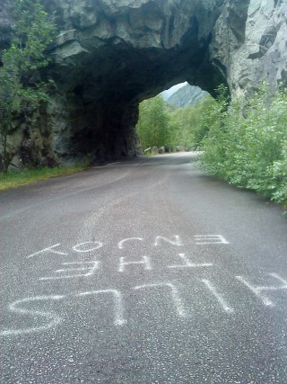 En lång dag på vägarna från målet vid Gausta till starten i Eidfjord. Som hastigt och lustigt blev starten i Ringöy, där vattentemperaturen är lite hemulare än de 11 som just nu råder inne vid Eidfjord. Som bonus blir därmed cyklingen förlängd med två mil till tjugo härliga norska fjällmil. Just nu känns det som en vinstlott - den dryga mil jag testade uppför Måbodalen idag fullkomligt ropar efter mer cykling. Det här ska bli skoj. Men tidigt - uppstigning hiskeliga 0200, för båten till Ringöy går 0330. Godnatt!