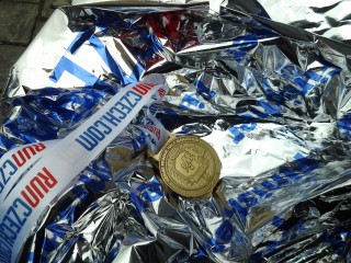 Bansträckningen blir lite tråkigare norröver, men floden har vi hela tiden med oss, publiken trotsar tappert kylan och hejar på bra, och med jämna mellanrum får vi stöd av diverse liveband. Efter femton kilometer känns det fortfarande rimligt ok i kroppen, vi springer åter över floden och vänder tillbaka söderut igen. Jag har ökat tempot en aning och gör några kilometer i trakterna kring 4:25-4:30. Med en halvannan kilometer kvar hör och ser vi målområdet men viker ut på Čechův most för en sista vända på andra sidan floden. Nu börjar jag känna mig lite småtrött men konstaterar att jag har marginal till det provisoriskt uppsatta 1:40-målet, och unnar mig att sänka farten sista biten in. Njuter av publikens jubel och går i mål på 1.39.22. Eller 1.38.51 i nettotid då.