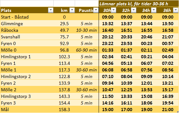 Förkylningen har släppt sen ett par veckor, jag har hunnit med ett par sista kortare långpass i Sandsjöbacka och laddar nu för 100 miles i helgen, start fredag morgon i Båstad. Väderprognosen ser bra ut med jämna temperaturer och bara något lite duggregn på natten. Kollar igenom löptider och funderar på hur lång tid det kan ta och landar i allt mellan 30 och 36 timmar beroende på hur och om kroppen håller ihop. Litet underläge i det att det inte är jätteviktigt för mig att fullfölja, loppet är primärt en check och ett långt pass inför ALUT - men även ur det perpektivet är det obra om det går för snett. Men känner jag att nåt håller på att gå sönder kommer jag att kliva av.