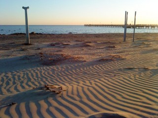 Helt spontant och ganska oväntat har vi sålunda pysslat ihop en liten tränings- och avkopplingshelg; lördageftermiddagen fylls med lugna promenader i solnedgången och ett skönt och lagom långt simpass. Söndagmorgonen med ett lugnt strandjoggpass på den kalla och tämligen övergivna stranden. Badvaktstorn, klockor och andra beachattiraljer som ter sig helt naturliga under högsäsong ser smått surrealistiska ut nu. Men löpningen på den hårdpackade sanden är fin, det vindpinade havet rullar ute till höger och höga strandgräsbevuxna sanddyner till vänster. Tempot lågt och lätt till en början, jag känner fortfarande av ett tjugoåttakilometerspass i 4:50-tempo från i fredags, särskilt glutéerna ömmar en smula och det känns välgörande att få baka ut dem lite - för i eftermiddag väntar ett enklare subtröskelintervallpass är det tänkt.