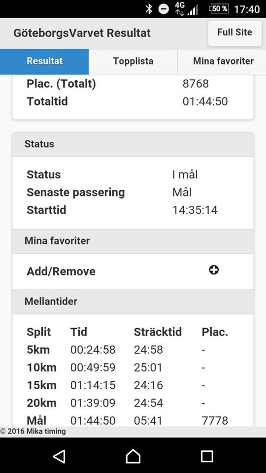 Som folkfest betraktat är ju Varvet nåt helt otroligt och magnifikt, härligt att se Göteborg bjuda till så. Publiken, staden och orkestrarna längs vägen gör ju varvet till något alldeles extra. Som löpartävling är det egentligen helt underkänt. Så här trångt får det inte vara - med så isärdragna startgrupper blir det aldrig mer plats längs vägen och då måste man också se till att det finns fullbredd att springa på, från start till mål. Här är det som bäst ett körfält brett nära start, sedan blir det egentligen bara trängre. Med nuvarande upplägg skulle man behöva det dubbla - och eftersom stan ändå är lamslagen under hela dagen förstår jag inte riktigt varför det inte redan är så.