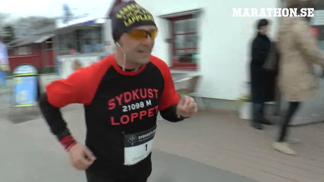 Med start i västra Trelleborg fick Christer ihop sträckan till 21 kilometer. En speciell bana där första kilometerna går tvärs över Sveriges sydligaste golfbana med Trelleborgs golfklubbs goda minne. Efter en sväng i hamnen fortsätter banan in till centrum. När den första lättlöpta milen är avklarad blir det en helt annan sorts löpning längs sanddynorna. Tung löpning men med ofta en härlig vy utöver havet.