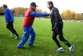 Andra är mer speciella. Som övningen där man ska våga falla framåt för att på det sättet få upp känslan att våga falla framåt i löpsteget. Metodiken känns spännande – en spännande mix mellan rysk och amerikansk träningslära.