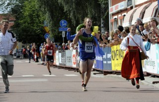 Nils "Mora-Nisse" Karlsson har nio segrar i Vasaloppet. I lördags var barnbarnet Anders Eriksson nära att vinna VasaStafetten tillsammans med sina kompisar från Brandkåren i Stockholm. Men till slut vann hemmalaget IFK Mora efter en intensiv spurtduell.