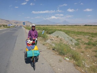 – Jag springer i skuggan av raden med lastbilar som väntar på att passera gränsen. Chaufförerna sitter på mattor under bilarna och tittar förvånat upp när jag kommer förbi. Ibland får jag höra ”Tourist? Welcome!” Många förbipasserande bilar tutar och vinkar, en del människor håller upp mobilen och tar kort. De säger ”Hello”, jag svarar ”Salam”.