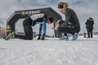 Låter du dig tvivla på om isen kommer hålla, eller om skorna kommer att få grepp? När bussen kör in mot startområdet öppnar ögonen upp sig likt ett panoramafönster och bansträckningen breder ut sig över sjön. Vi hinner knappt ut ur bussen när löpare likt turister som vi är fångar upp mobilen ur fickan och förevigar minnet. Det är en klarblå vinterdag och solens strålar omfamnar oss med nu bara ett par minus i luften.