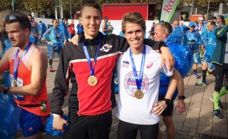 Nöjda efter söndagens Frankfurt Marathon, Björn Hammar och Linus Hultegård.
