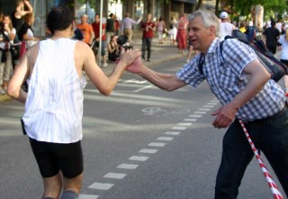 - Jag har sprungit maraton två gånger själv och skulle gärna vilja göra det igen men jag är för dåligt tränad, berättar Tommy Öberg mellan handklapparna.