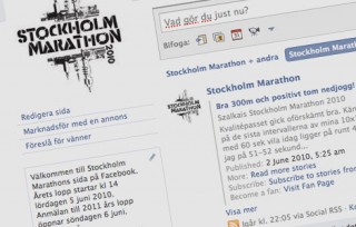 Stockholm Marathon har förekommit på flera sätt på Facebook. Nu finns det också en officiell sida för evenemanget. Fokuset just nu är årets lopp på lördag. På Facebook-sidan finns Marathon.se:s senaste nyheter om loppet samt Szalkais blogg om Stockholm Marathon.se 2010.