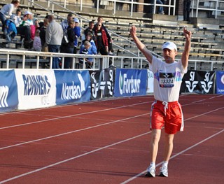 Sist in i mål på Stockholm Stadion var Patrik Rosell. Mormor sprang ifrån på den sista biten.