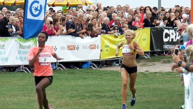 Medan duellen pågick i täten jobbade sig Johanna Eriksson allt närmare. På den lite tuffare andra halvan var Johanna klart snabbast av alla, elva sekunder snabbare än Ayantu Eshete. Nytt personbästa igen för Motalalöparen som förbättrade sitt personbästa med 29 sekunder.