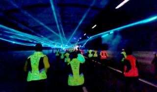 Och banan då, hur var den? Jo, rätt tuff faktiskt. En böljande bana med långa uppförs- och nedförsbackar. För de löpare som är vana att springa med GPS-klocka blev det kanske extra kämpigt eftersom GPS:en inte funkade i tunneln. Det blev att springa på känn i stället. Dessutom blev det rätt varmt i tunneln, vi löpare blev som element som värmde upp den kyliga och lite råa tunnelluften, och mot slutet kändes det lite kvavt. Då var det skönt att komma ut och få springa några hundra meter i friska luften innan målgång.