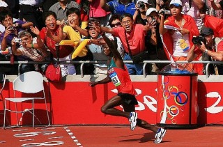 Men trots tuffa yttre förhållanden går det att springa snabbt i den kinesiska huvudstaden. Kenyanen Sammy Wanjiru vann OS-guld 2008 med tiden 2.06.32. Wanjiuru var vid tidpunkten världsrekordhållare. Han dog 2011 under oklara omständigheter efter fall från en balkong hemma i Kenya.
