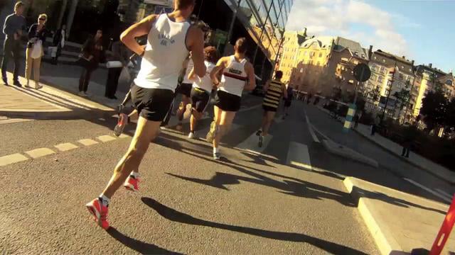 För att bättre visa hur det kan se ut har vi här intill lagt en upptagning från DN Stockholm Halvmarathon där vi bland andra ser elitlöparna Cédric Schwartzler och Isabellah Anderssons löpsteg. (Farten vid tillfället är cirka 3.25 per km)