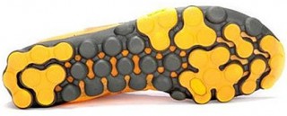 Skorna är helt platta och tack vare ovandelens svetsade sömmar springer man gärna barfota i skon. Vi har inte jämfört med sockeplast men den här skon matchar absolut Vibrams Five Fingers terrängskor. Det är förresten också Vibram-gummi i poddarna i den sinnrikt konstruerade sulan.