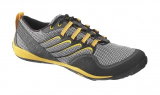 Vid första anblicken ser den ut som en vanlig sko. Men Merrells Trail Glove är en hybrid, ett mellanting mellan en vanlig låg terrängsko och en Vibram Five Fingers. Slitsulan är av samma slag, som i Five Fingers, tillverkad av italienska Vibram. Den följsamma gummisulan ger en skön barfotakänsla och med en bred tåbox så får tårna fritt rum.