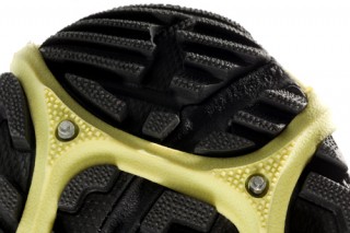 Svenska Icebug har gått ifrån fasta dubbar i denna modell där man istället har ett broddband typ Slip stopper och en konventionell slitsula. Broddbandet har sex dubbar. Andra Icebug-modeller brukar ha betydligt fler dubbar.